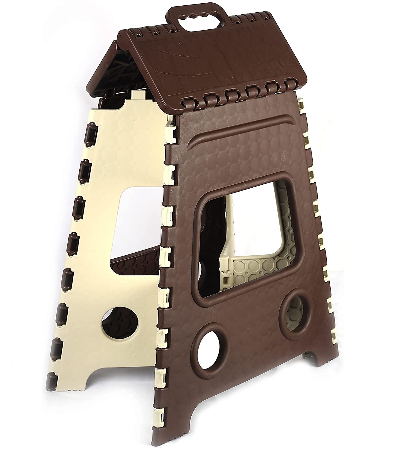- The lightweight, but sturdy folding step stool is easy to use because it opens with one flip of the hand.